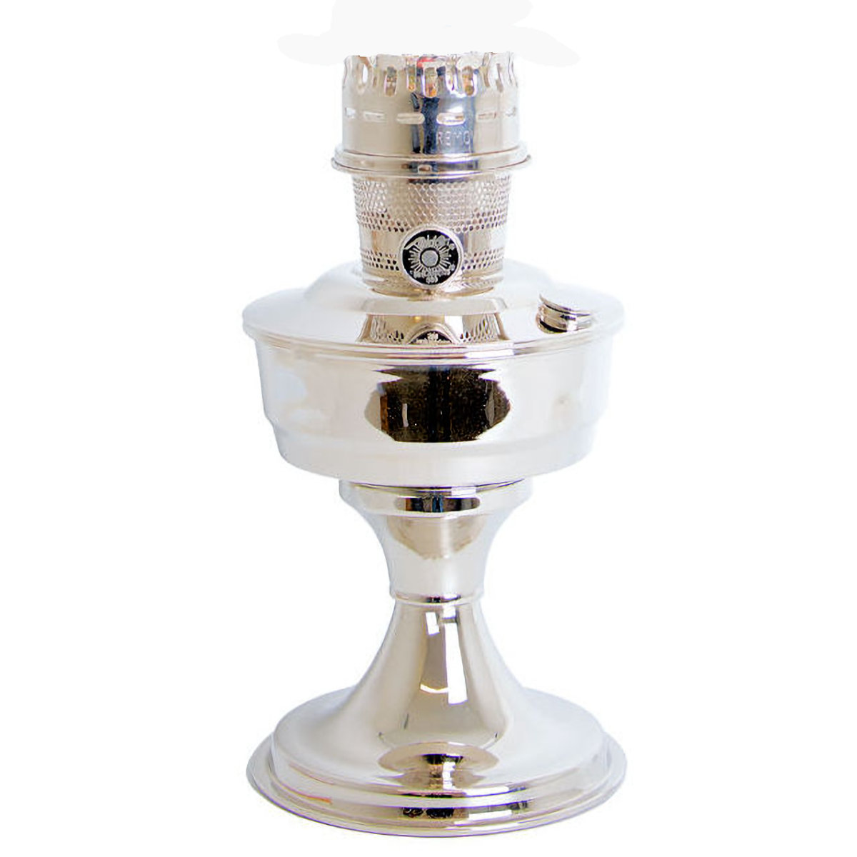 Aladdin Lamp Chrome Heritage Table Lamp. Features a solid brass lamp base and burner with each chrome plated. Operates for up to 12 hours on a single fill. Designed and styled after the original Model 12 Aladdin Table lamp dating back to the 1920-30’s. Chrome Lamp base is polished and lacquered for long-lasting beauty. Lamp comes complete with burner, wick, chimney, mantle wick cleaner and operating instructions.