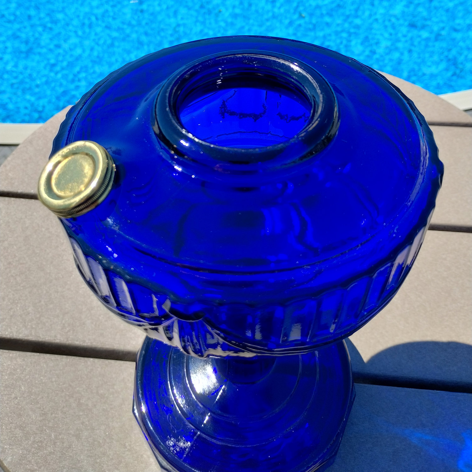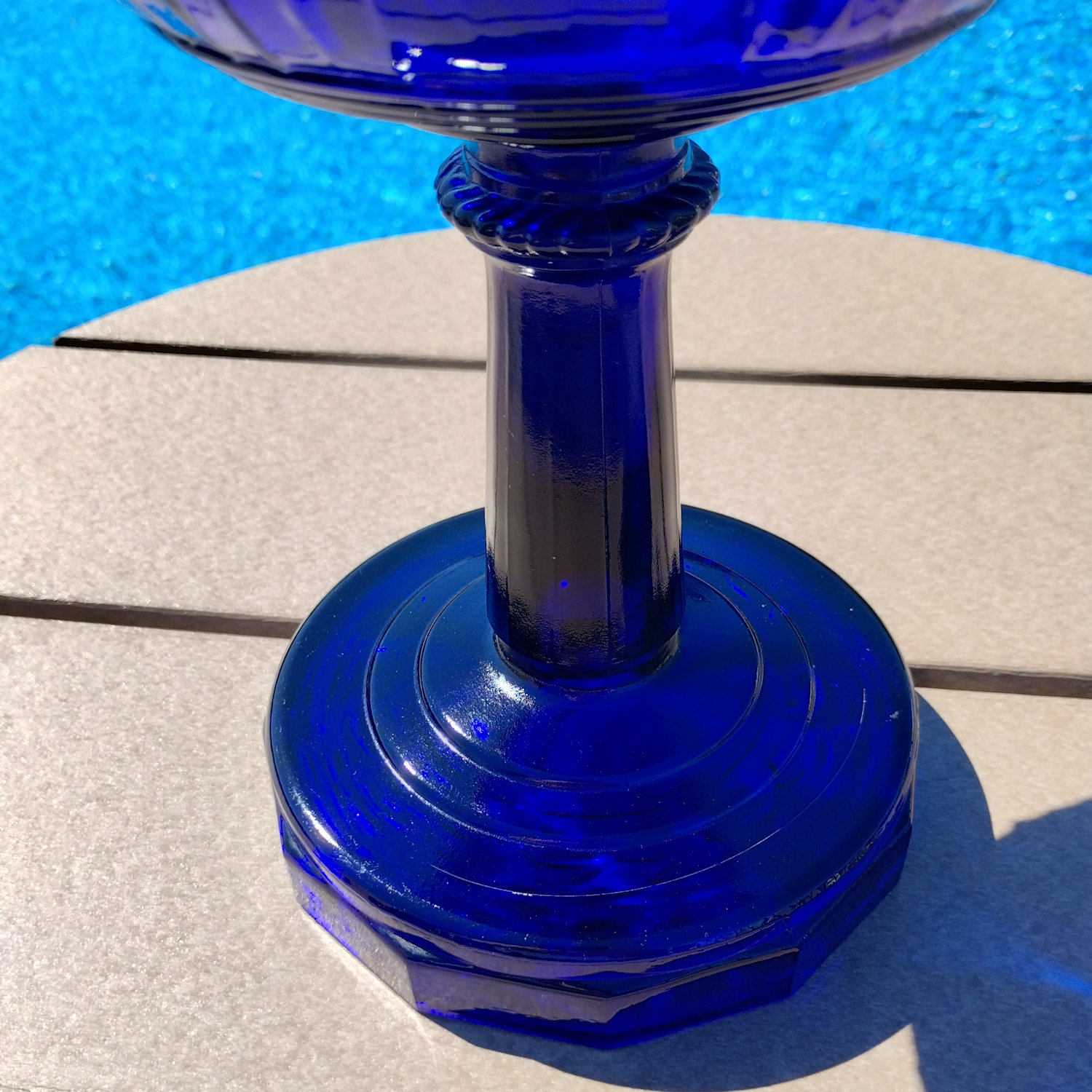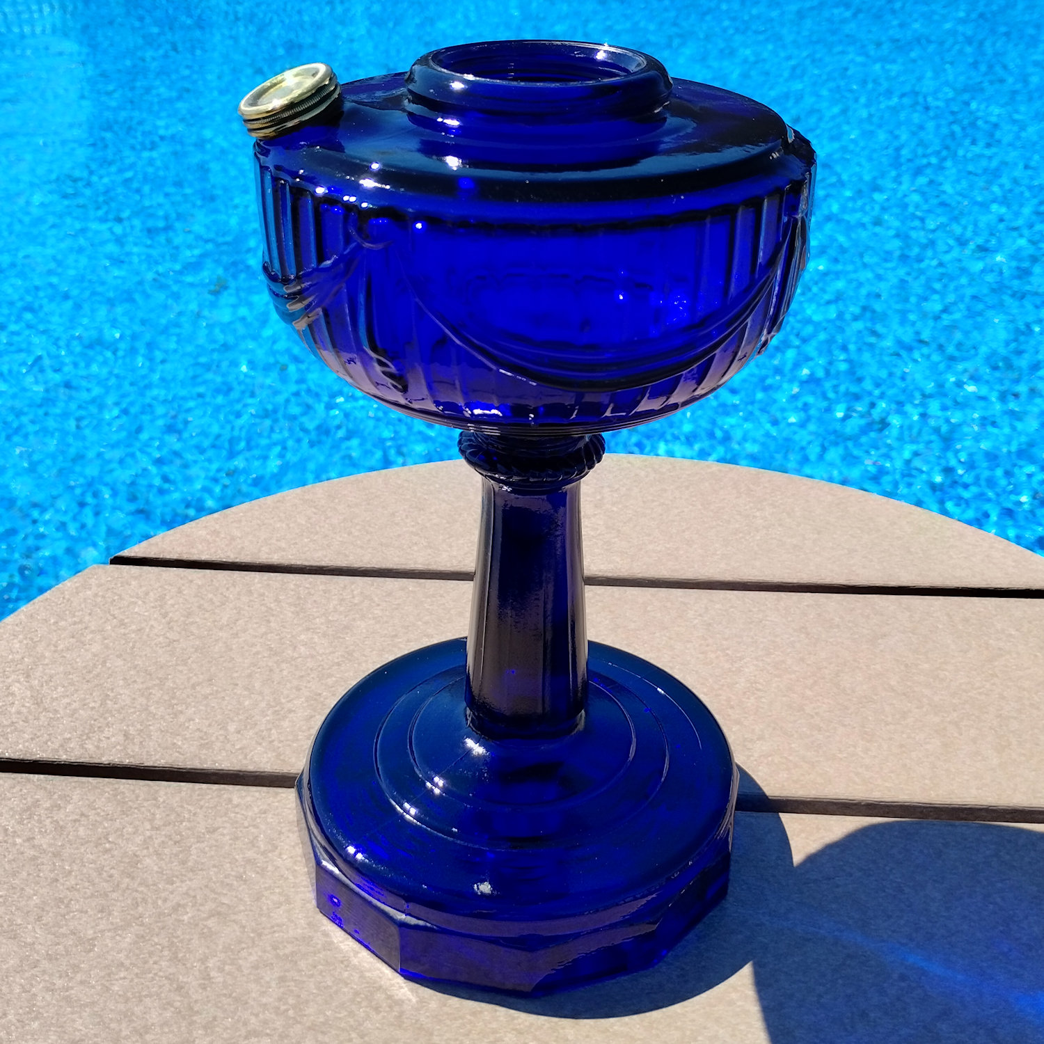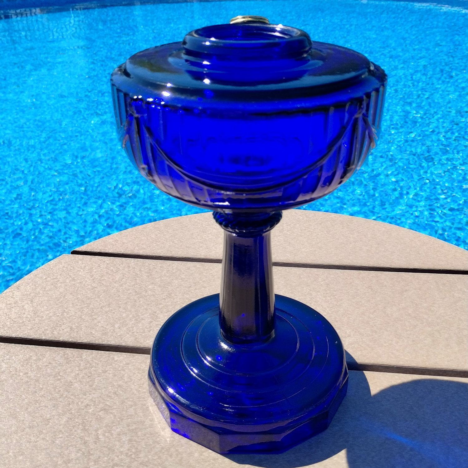 Aladdin Lamp Cobalt Blue Tall Lincoln Drape Plain Foot. Circa 1940-1949.
