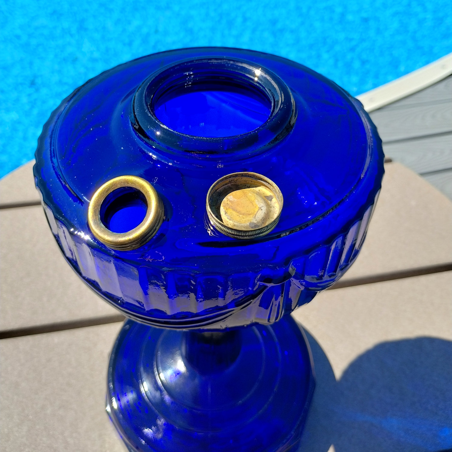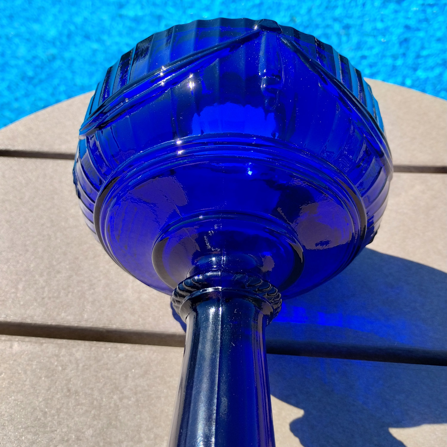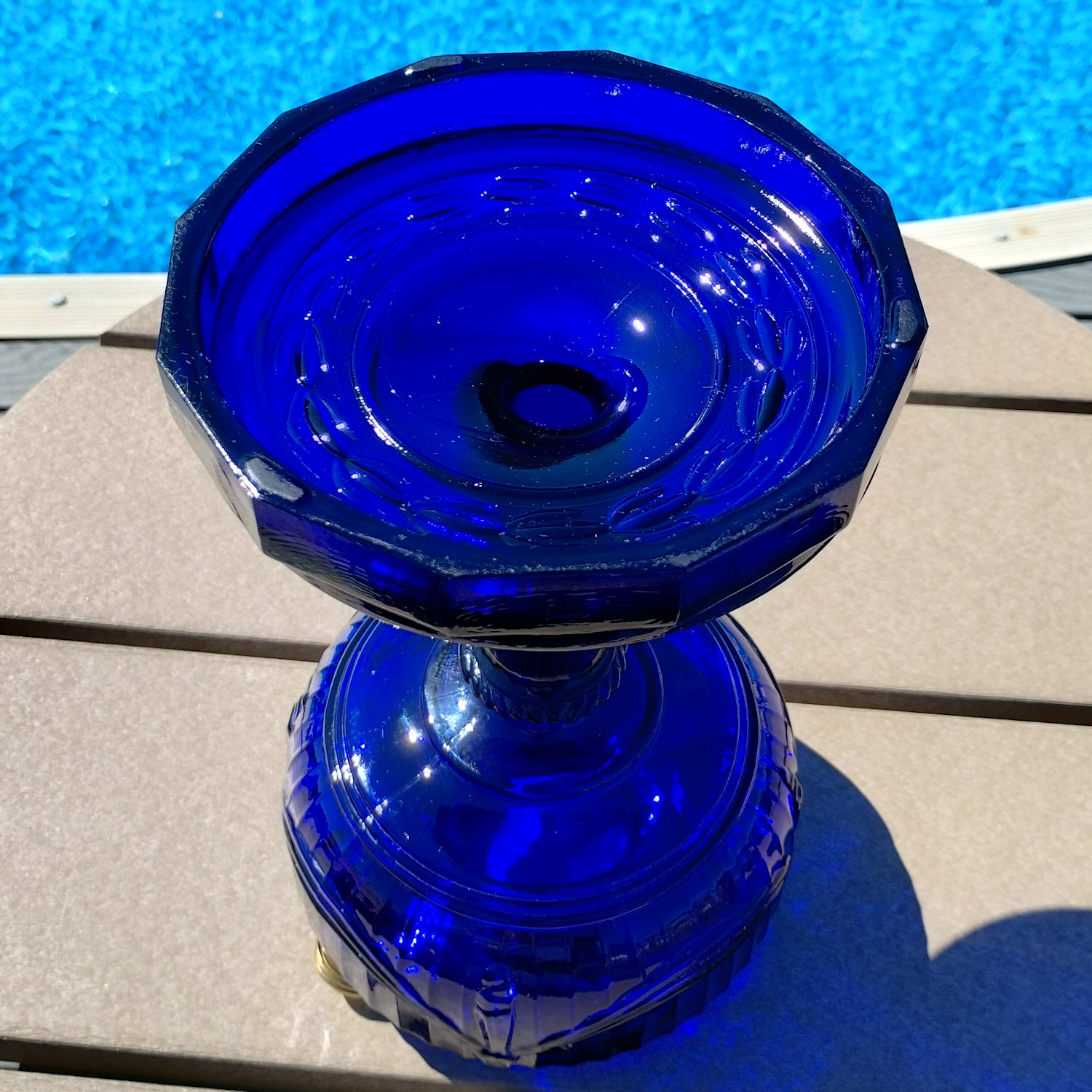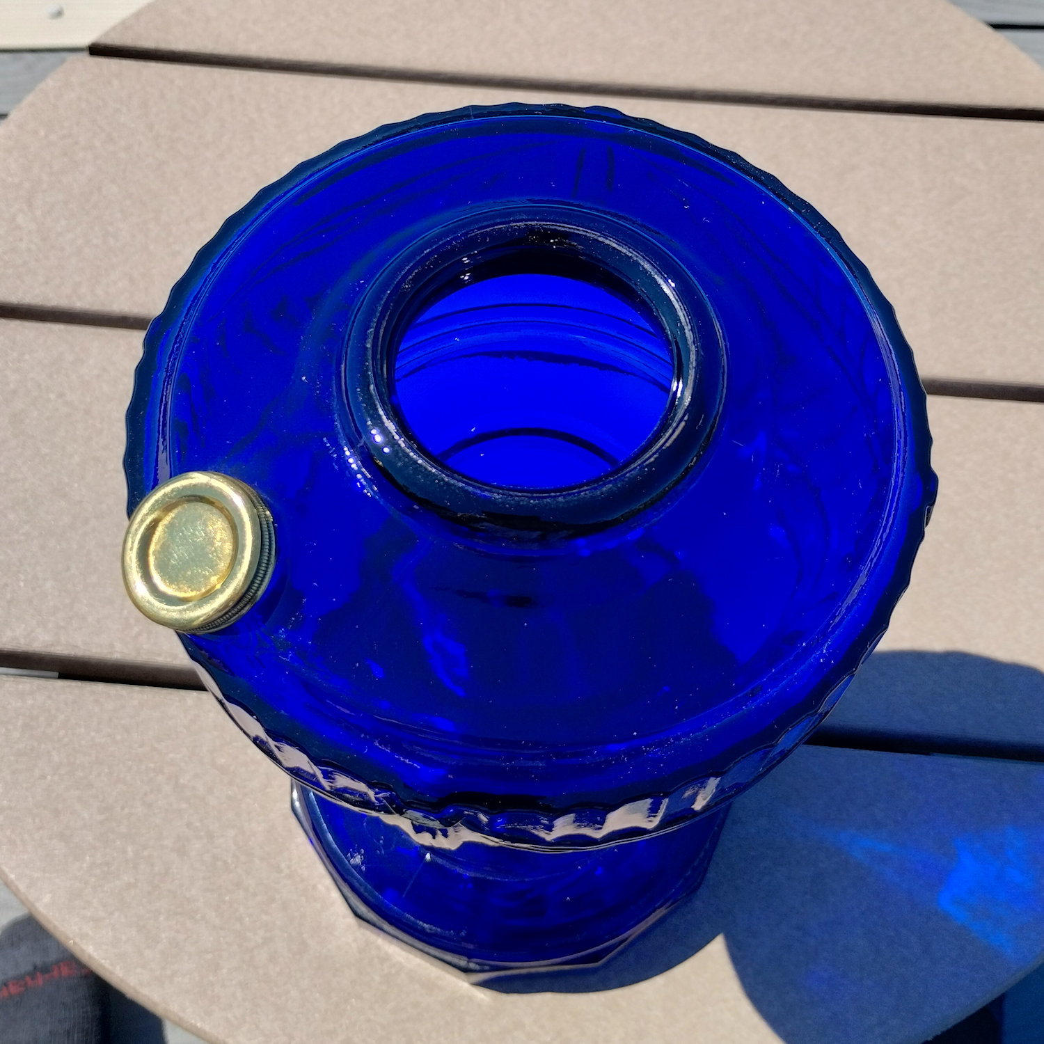 Aladdin Lamp Cobalt Blue Tall Lincoln Drape Plain Foot. Circa 1940-1949.