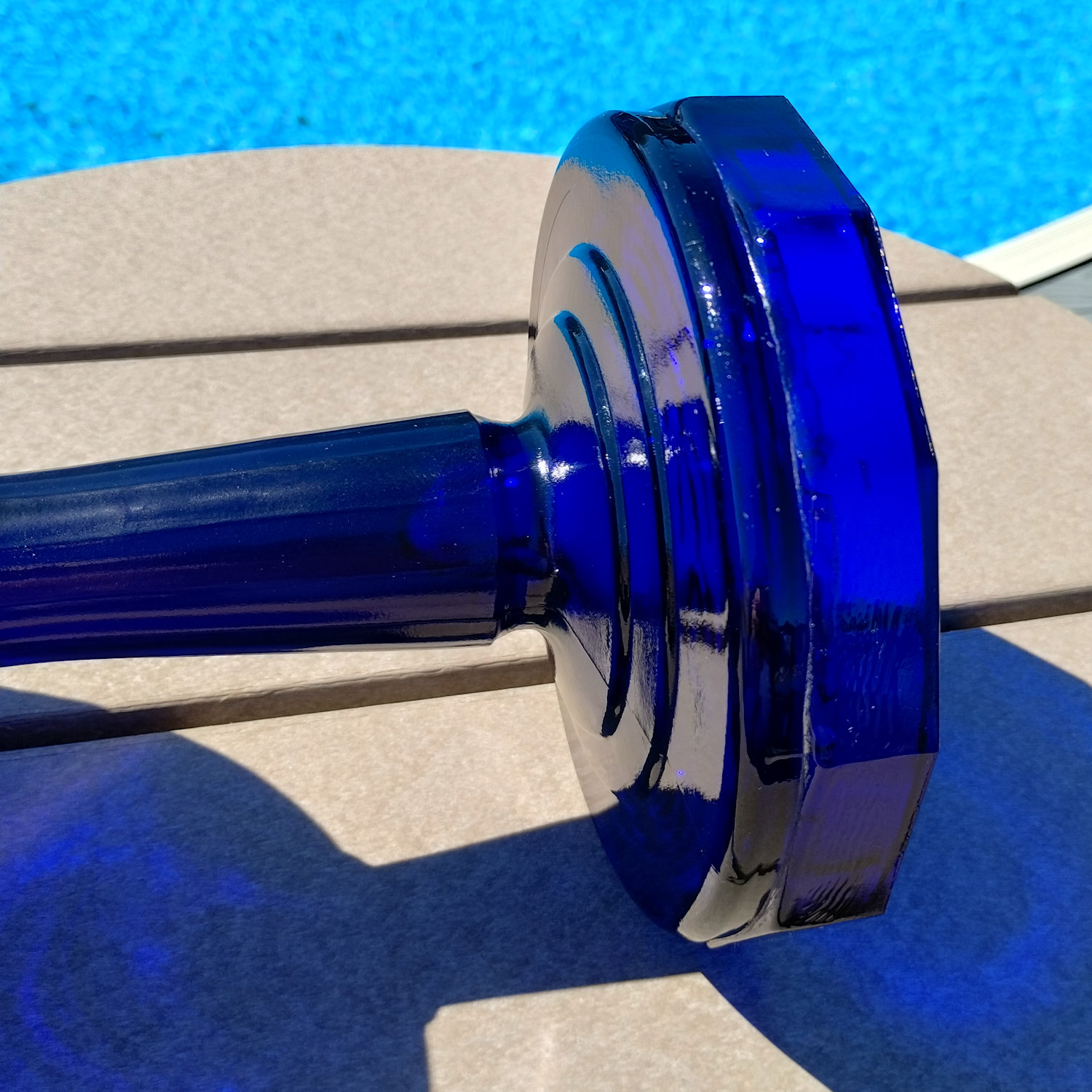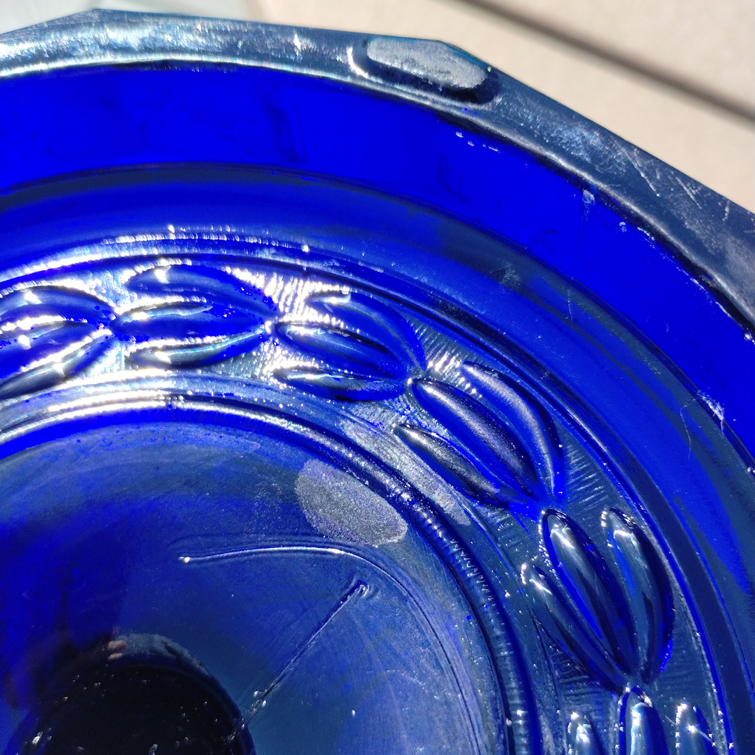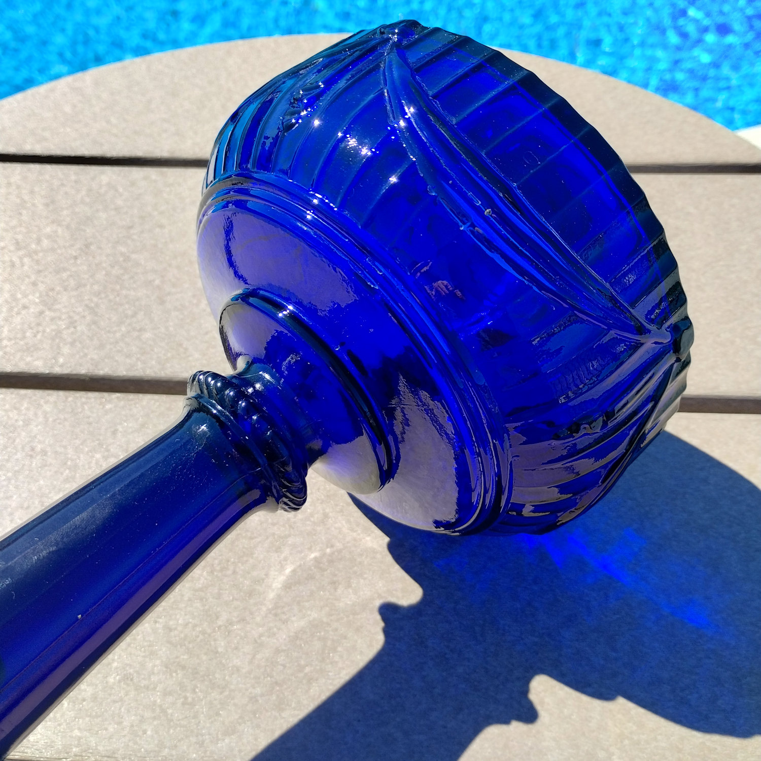 Aladdin Lamp Cobalt Blue Tall Lincoln Drape Plain Foot. Circa 1940-1949. This is an Old Original One-Piece Lamp – This is not a reproduction. Although the images in this listing were taken outdoors on a cloudless day with very strong sunlight, this lamp has very strong dark cobalt color in indoor lighting.