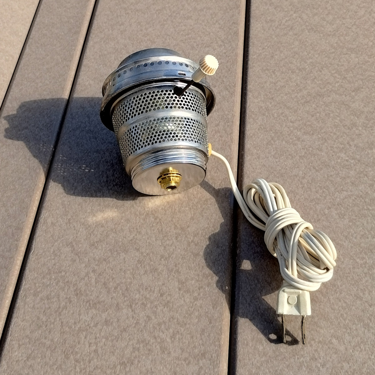 Aladdin Lamp Style Electric Convertor Burner for Lox-on Chimneys. Fits Most Aladdin Lamps with coarse thread made after 1932.