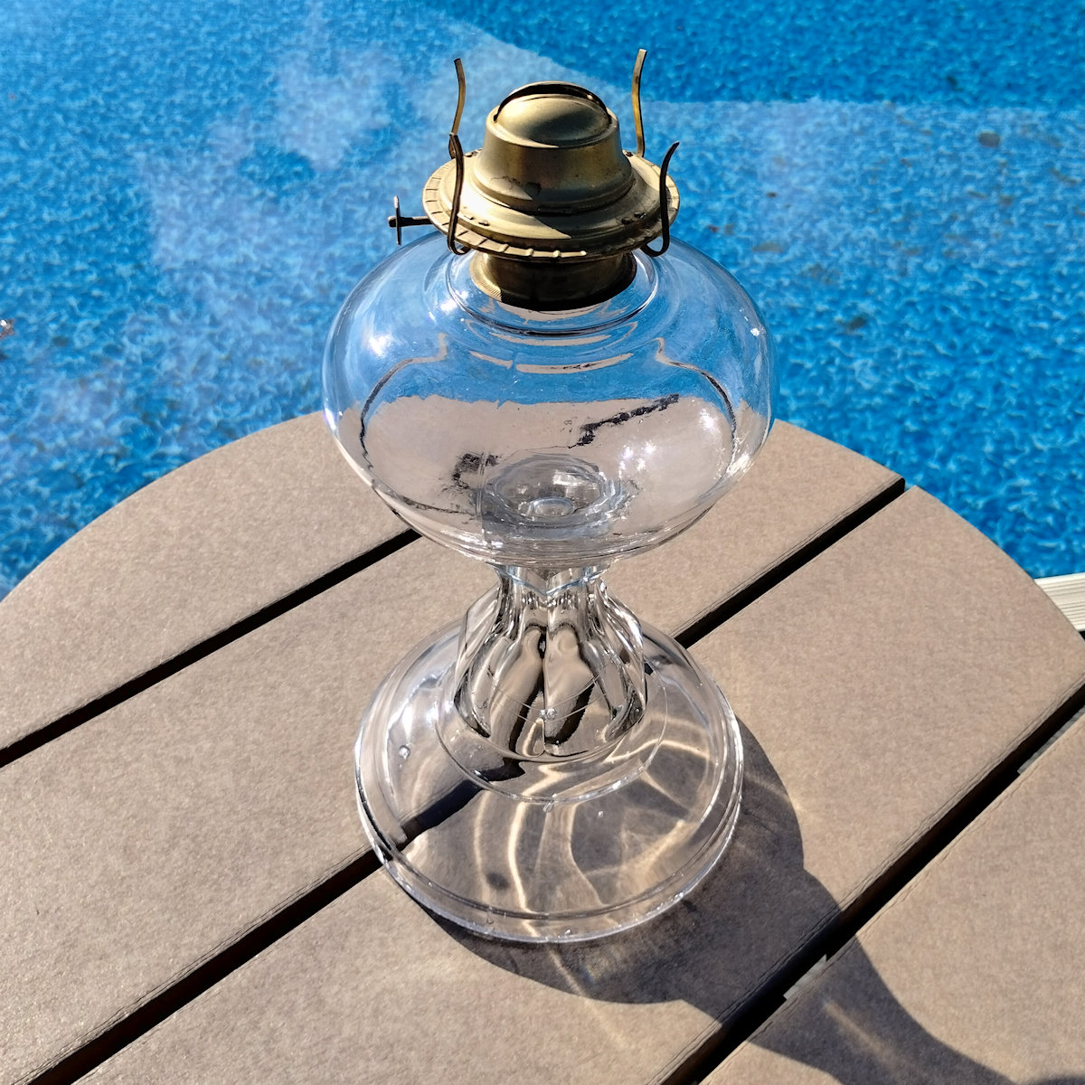 Clear Crystal Glass Flat Wick Oil Lamp. 12-1/2 iinches tall with a #2 oil lamp Burner.